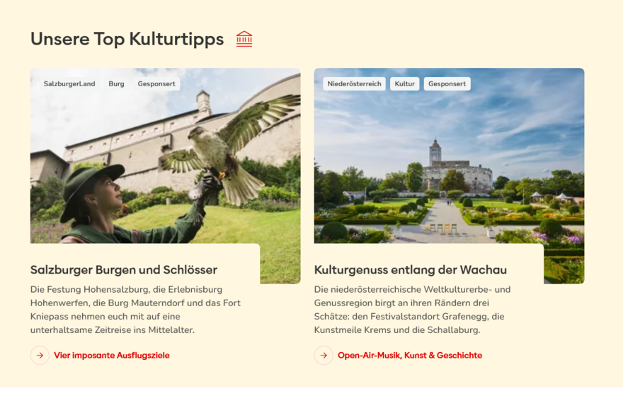 Präsentation Ihrer Botschaft im thematisch passenden Umfeld auf dem offiziellen Tourismusportal Österreichs